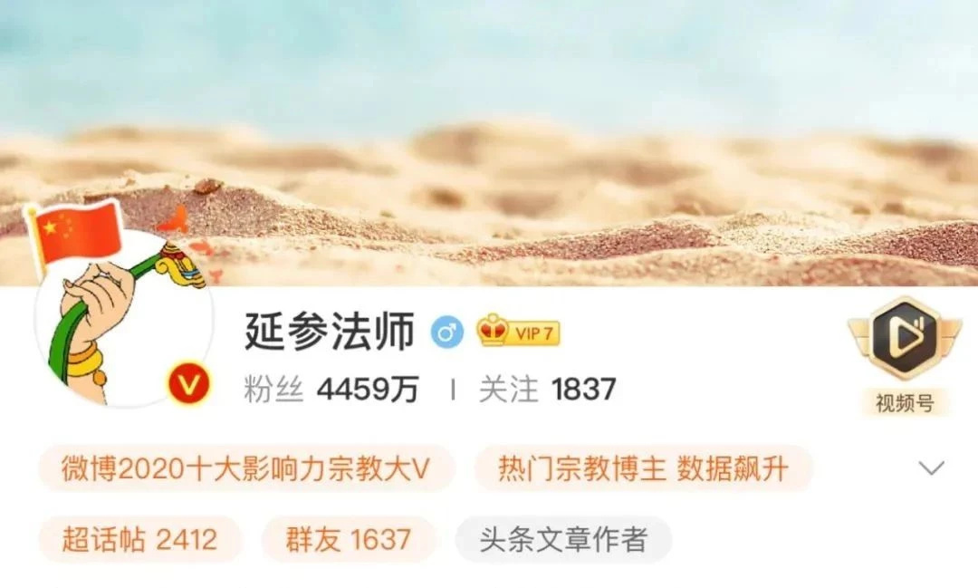 作為一名網紅法延參法師在微博上擁有近45萬的粉絲,同時還玩直播、上綜藝,每一步都走在了時代的前沿。