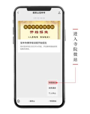 (1)微信關(guān)注【般若山寶林寺】官方公眾號,或者長按下方海報二維碼,進入首頁。